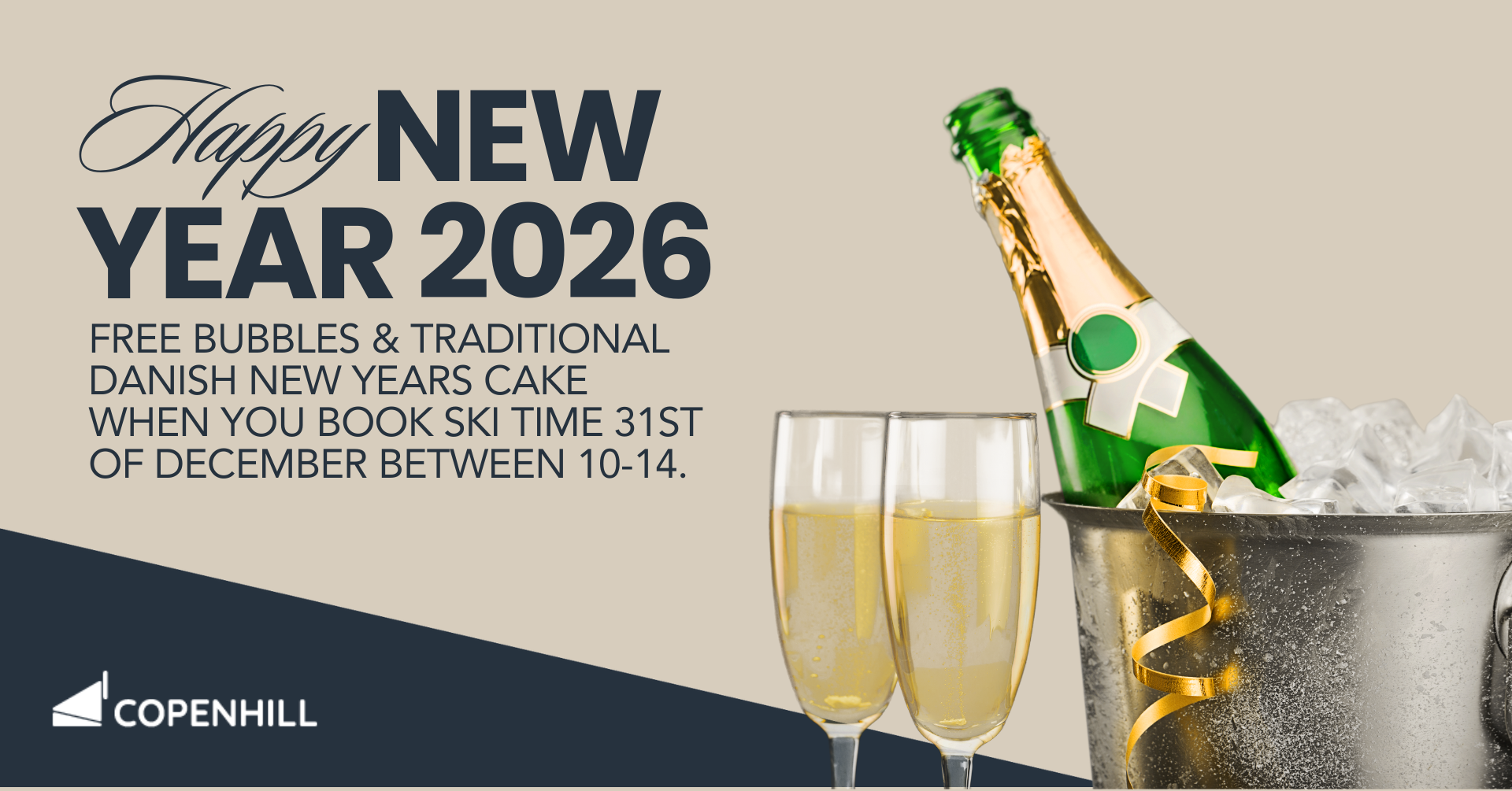 On New Year’s Eve, December 31st, from 10 AM–2 PM, we’re offering free bubbles and our traditionel danish marzipan cake "kransekage" to everyone who books ski time.